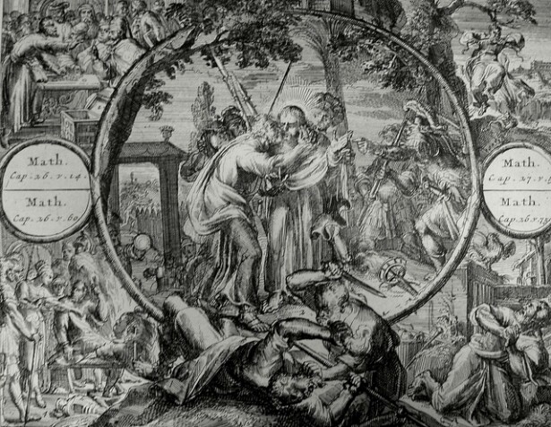 Christ’s earthly ministry in the Phillip Medhurst Bible 331 of 550 Jesus is arrested in Gethsemane Matthew 26:49-51 De Hooghe