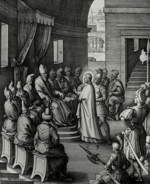 Christ’s earthly ministry in the Bowyer Bible 349 of 550 Jesus brought before Caiaphas Matthew 26:57 Passeri