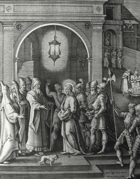Christ’s earthly ministry in the Phillip Medhurst Bible 350 of 550 Jesus is led to the High priest Mark 14:53 Passeri