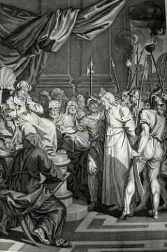 Christ’s earthly ministry in the Phillip Medhurst Bible 360 of 550 The high priest rends his garment Matthew 26:65 Picart