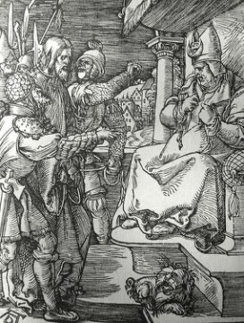Christ’s earthly ministry in the Phillip Medhurst Bible 362 of 550 The high priest rends his garment Mark 14:63 Durer