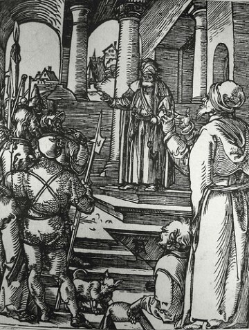 Christ’s earthly ministry in the Phillip Medhurst Bible 372 of 550 Jesus is brought before Pilate Matthew 27:11-14 Durer