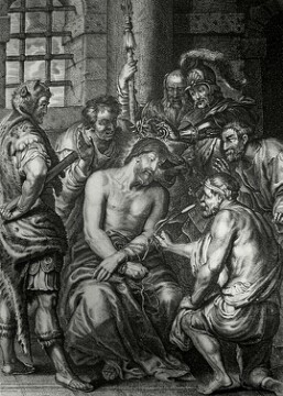 Christ’s earthly ministry in the Phillip Medhurst Bible 394 of 550 Jesus is mocked by the soldiery Matthew 27:29-30 after Rubens
