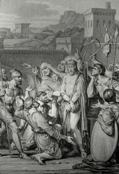 Christ’s earthly ministry in the Phillip Medhurst Bible 402 of 550 Jesus is mocked by the soldiery Mark 15:17-19 French School