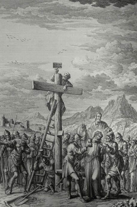 Christ’s earthly ministry in the Phillip Medhurst Bible 419 of 550 Jesus is crucified Matthew 27:34 Heuman