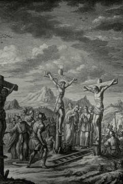 Christ’s earthly ministry in the Phillip Medhurst Bible 427 of 550 Jesus is pierced Matthew 27:48 Harder