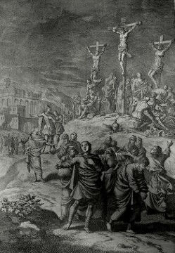 Christ’s earthly ministry in the Phillip Medhurst Bible 434 of 550 Jesus is crucified Mark 15:40-41 Caspar Luyken