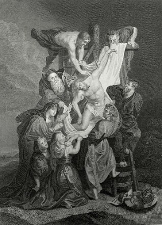 Christ’s earthly ministry in the Phillip Medhurst Bible 480 of 550 The deposition Mark 15:46 after Rubens