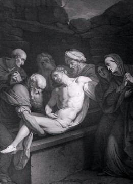 Christ’s earthly ministry in the Phillip Medhurst Bible 452 of 550 The entombment Matthew 27:59-60 after Daniele Crespi