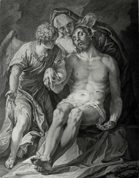 Christ’s earthly ministry in the Phillip Medhurst Bible 465 of 550 Pieta Matthew 27:59-60 after Corregio