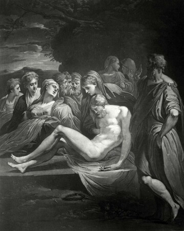 Christ’s earthly ministry in the Phillip Medhurst Bible 477 of 550 The entombment Matthew 27:60-61 after Parmigiano