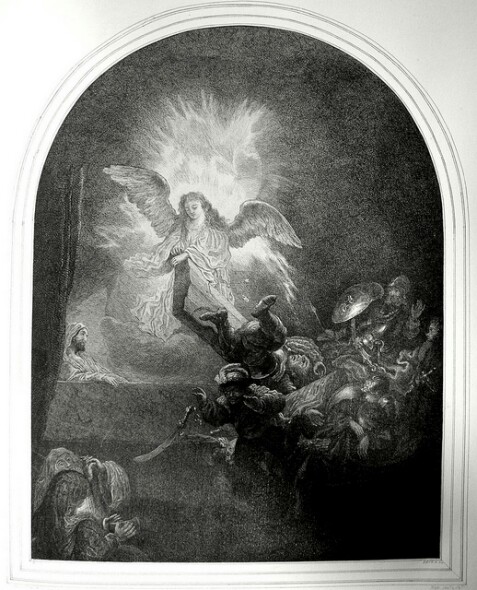 Christ’s earthly ministry in the Phillip Medhurst Bible 506 of 550 The Resurrection Matthew 28:2-4 after Rembrandt