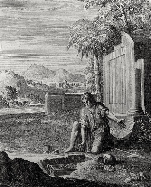Phillip Medhurst presents Bowyer Bible print 3671 The parable of the hidden treasure Matthew 13:44 Caspar Luyken on Flickr. A print from the Bowyer Bible, a grangerised copy of Macklin’s Bible in Bolton Museum and Archives, England.