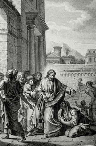 Phillip Medhurst presents Bowyer Bible print 3593 The woman with the haemorrhage is healed Matthew 9:20 Marillier