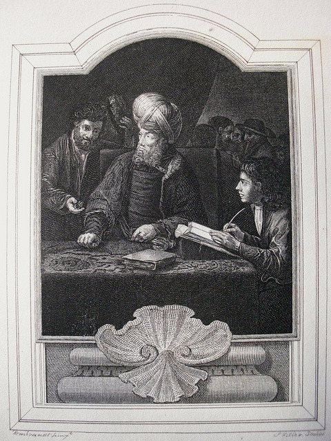 Phillip Medhurst presents Bowyer Bible print 3796 The parable of the labourers in the vineyard Matthew 20:8-15 after Rembrandt on Flickr. A print from the Bowyer Bible, a grangerised copy of Macklin’s Bible in Bolton Museum and Archives, England.