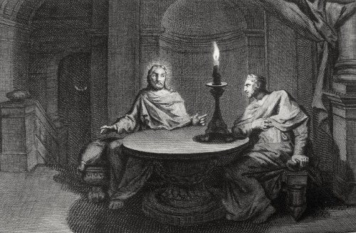 Phillip Medhurst presents John’s Gospel: Bowyer Bible print 5325 Christ receives Nicodemus John 3:1-21 after Rubens on Flickr. A print from the Bowyer Bible, a grangerised copy of Macklin’s Bible in Bolton Museum and Archives, England.