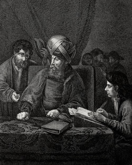 Phillip Medhurst presents John’s Gospel: Bowyer Bible print 5327 Christ receives Nicodemus John 3:1-21 Mortier’s Bible on Flickr. A print from the Bowyer Bible, a grangerised copy of Macklin’s Bible in Bolton Museum and Archives, England.