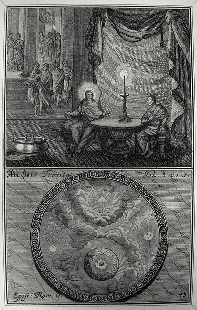 Phillip Medhurst presents John’s Gospel: Bowyer Bible print 5328 Christ receives Nicodemus John 3:1-15 Romans 2:43 Kraussen on Flickr. A print from the Bowyer Bible, a grangerised copy of Macklin’s Bible in Bolton Museum and Archives, England.