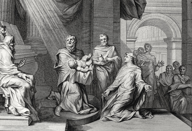 The infancy of Christ in the Bowyer Bible Nunc Dimittis Luke 2:22-28 Mortier’s Bible