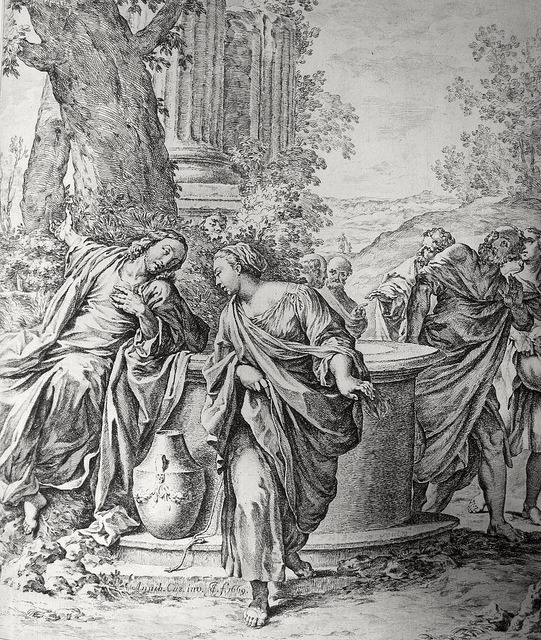 Bowyer Bible print 5338 Christ and the woman of Samaria John 4:5 to 27 after Carracci