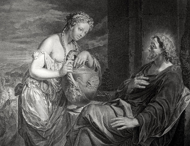 Bowyer Bible print 5344 Christ and the woman of Samaria John 4:5-7 after Le Brun