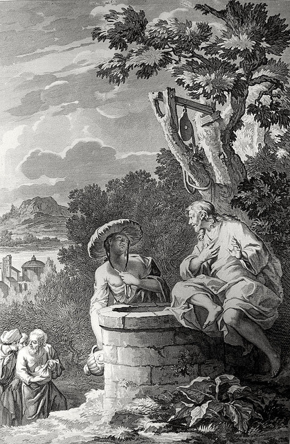 Bowyer Bible print 5343 Christ and the woman of Samaria John 4:4-7 Houbraken