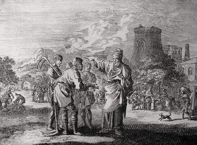 Bowyer Bible print 3809 The parable of the eleventh-hour labourers Matthew 20:1-15 Luyken