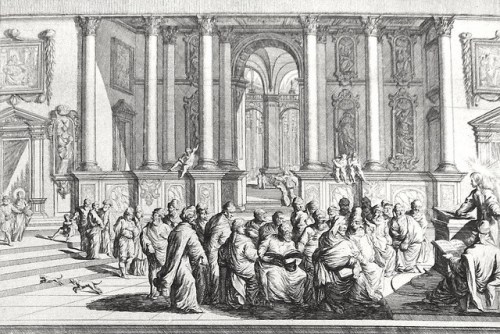 Luke in the Phillip Medhurst Collection 193 Jesus is found in the Temple Luke 2:46 Houbraken on Flickr. A print from the Phillip Medhurst Collection of Bible illustrations, published by Revd. Philip De Vere at St. George’s Court, Kidderminster.