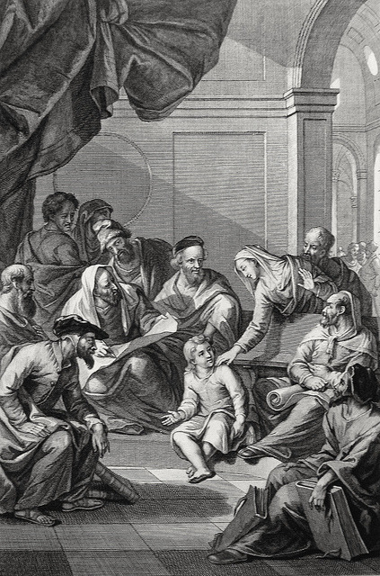 The infancy of Christ in the Bowyer Bible Jesus is found in the Temple Luke 2:46 Houbraken