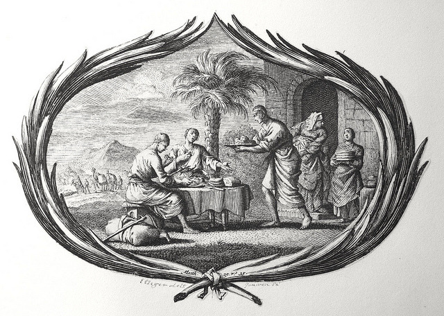 Bowyer Bible print 3939 Works of mercy: feeding the hungry Matthew 25:35 Elliger