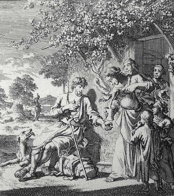 Bowyer Bible print 3943 Works of mercy: giving the thirsty drink Matthew 25:35 Jan Luyken