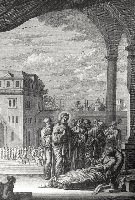 Bowyer Bible print 5361 Christ heals a man at the Sheep Pool John 5:2-10 Füssli engraved by Heuman