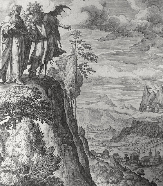 Luke in the Phillip Medhurst Collection 214 The temptation of Christ Luke 4:5-8 De Vos on Flickr.