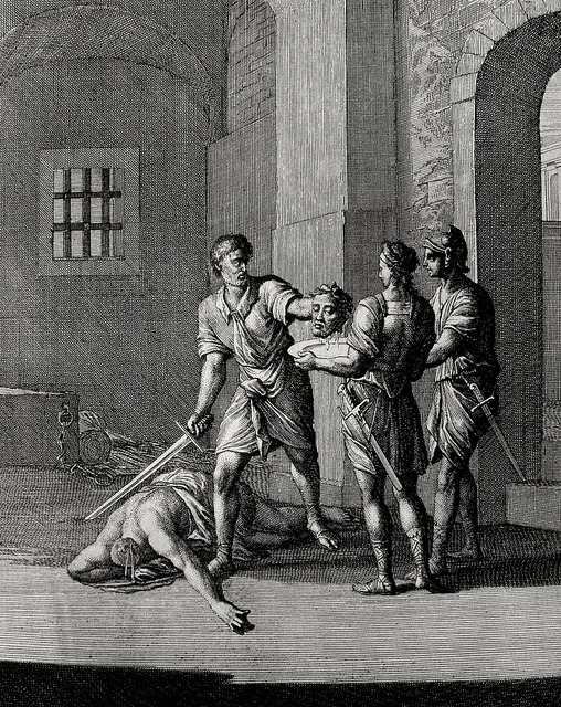 Bowyer Bible print 3694 The beheading of John the Baptist Matthew 14:10-11 Caspar Luyken
