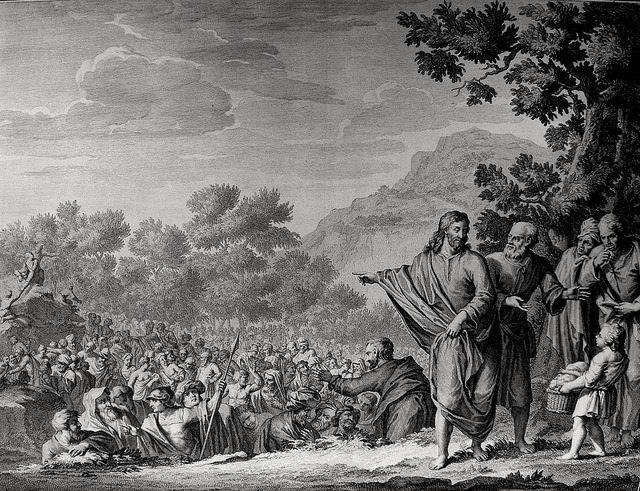 Bowyer Bible print 3697 Christ feeds the multitude Matthew 14:17-21 Houbraken