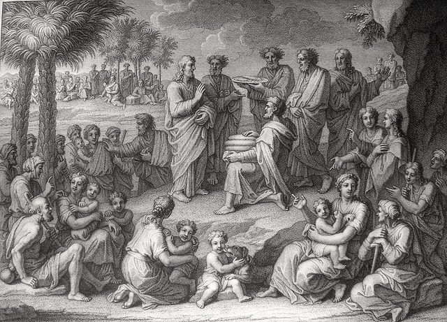 Bowyer Bible print 3701 Christ feeds the multitude Matthew 14:17-21 after Audran