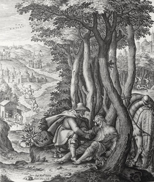 Luke in the Phillip Medhurst Collection 267 The parable of the good Samaritan Luke 10:30-34 Passeri on Flickr. A print from the Phillip Medhurst Collection of Bible illustrations, published by Revd. Philip De Vere at St.George’s Court, Kidderminster.