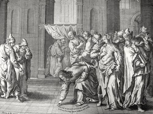 Phillip Medhurst presents John’s Gospel: Bowyer Bible print 5401 The woman taken in adultery John 8:3-8 De Vos on Flickr.