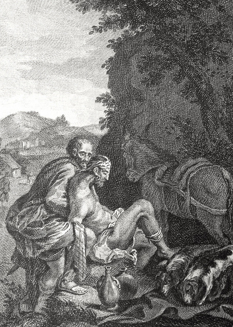 Luke in the Phillip Medhurst Collection 274 The parable of the good Samaritan Luke 10:33-34 Le Brun on Flickr.