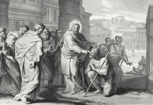 Phillip Medhurst presents John’s Gospel: Bowyer Bible print 5421 Jesus heals the man born blind John 9:1-7 Mortier’s Bible on Flickr. A print from the Bowyer Bible, a grangerised copy of Macklin’s Bible in Bolton Museum and Archives, England.