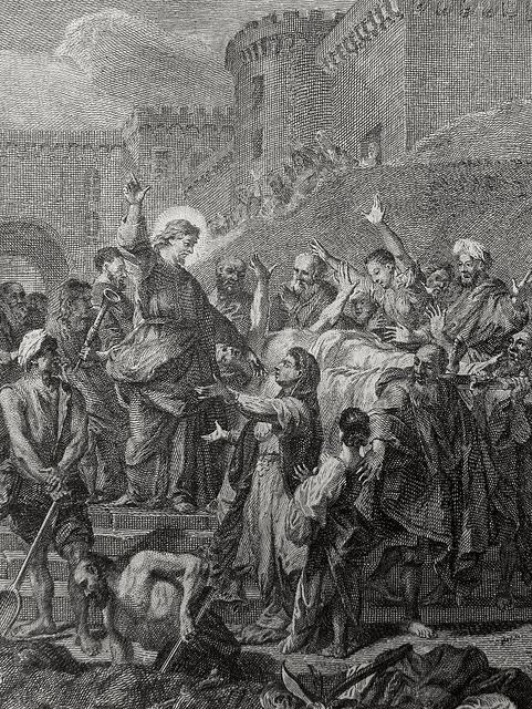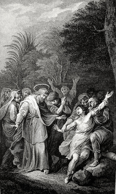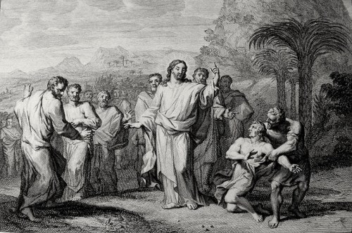 Luke in the Phillip Medhurst Collection 353 The parable of the lost sheep Luke 15:5-6 Luyken and son on Flickr. A print from the Phillip Medhurst Collection of Bible illustrations, published by Revd. Philip De Vere at St.George’s Court, Kidderminster.
