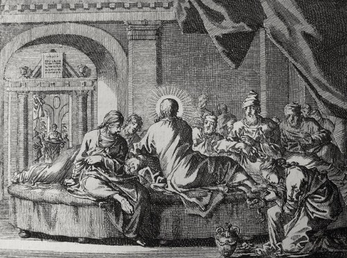 Luke in the Phillip Medhurst Collection 291 Christ is anointed by a sinful woman Luke 7:37-38 Jan Luyken on Flickr.