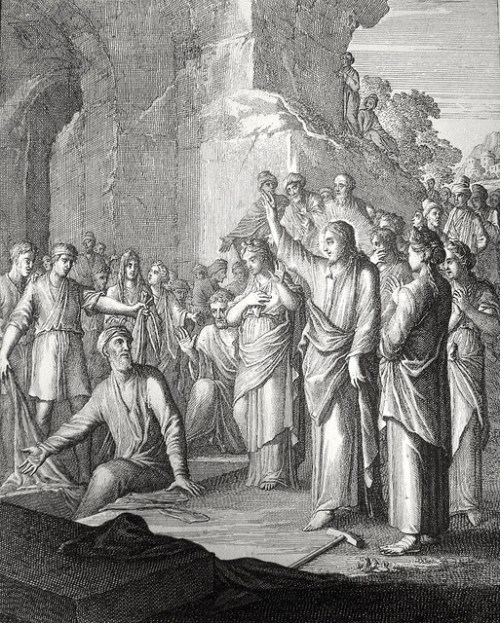 Phillip Medhurst presents John’s Gospel: Bowyer Bible print 5453 Christ raises Lazarus John 11:43-44 Caspar Luyken on Flickr.