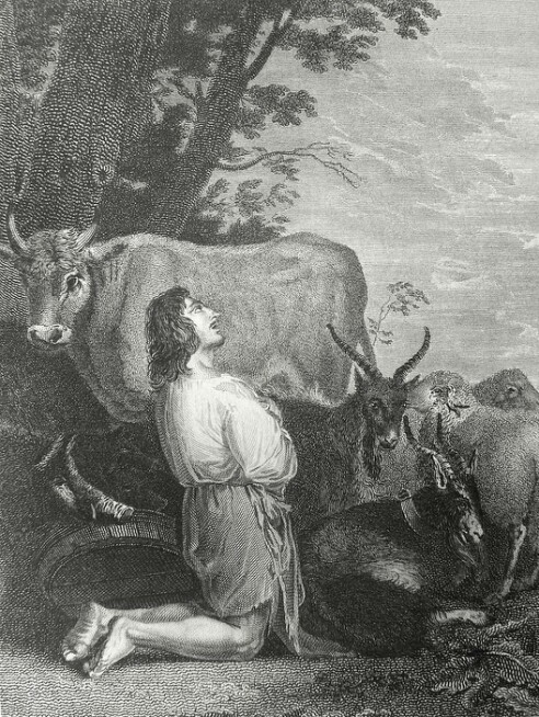 Luke in the Phillip Medhurst Collection 393 The parable of the prodigal son Luke 15:15-19 after Salvator Rosa