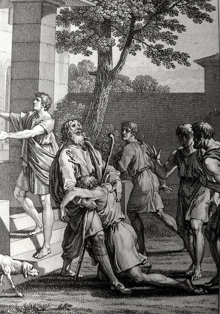 From “Le Nouveau Testament en latin et en français, traduit par Sacy.” Paris: Didot jeune, 1793-98. 5 octavo volumes with 108 plates engraved by Baquoy, Halbou, Tilliard and others after Jean-Michel Moreau (le jeune) 1741-1814.