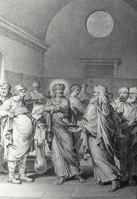 Luke in the Phillip Medhurst Collection 338 Christ heals the dropsy on the sabbath Luke 14:1-4 Moreau on Flickr.