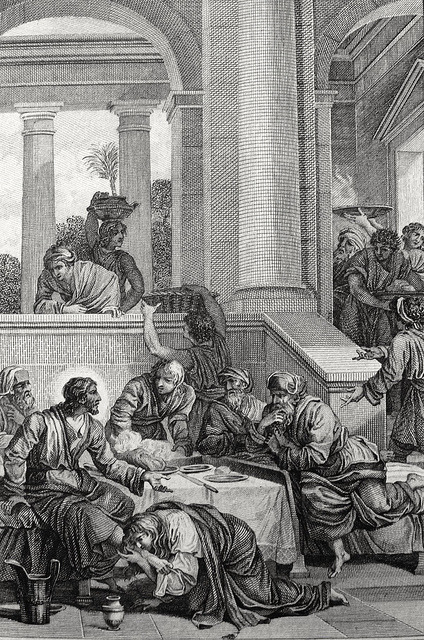 Luke in the Phillip Medhurst Collection 341 Christ is anointed by a sinful woman Luke 7:44 Monsiau on Flickr. A print from the Phillip Medhurst Collection of Bible illustrations, published by Revd. Philip De Vere at St. George’s Court, Kidderminster.