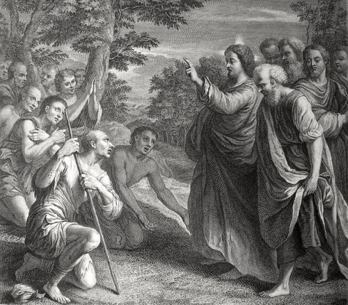 Luke in the Phillip Medhurst Collection 425 Christ heals the ten lepers Luke 17:12-14 after Titian on Flickr.
