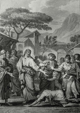 Luke in the Phillip Medhurst Collection 433 The Samaritan leper returns to give thanks Luke 17:15-16 Moreau