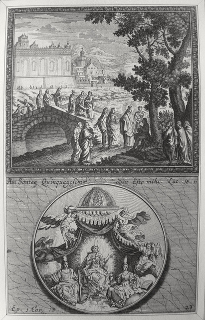 Luke in the Phillip Medhurst Collection 449 Christ heals blind Bartimaeus Luke 18:35-42 Faith Hope and Charity 1 Corinthians 13 Kraussen on Flickr. A print from the Phillip Medhurst Collection of Bible illustrations, published by Revd. Philip De Vere at St. George’s Court, Kidderminster.